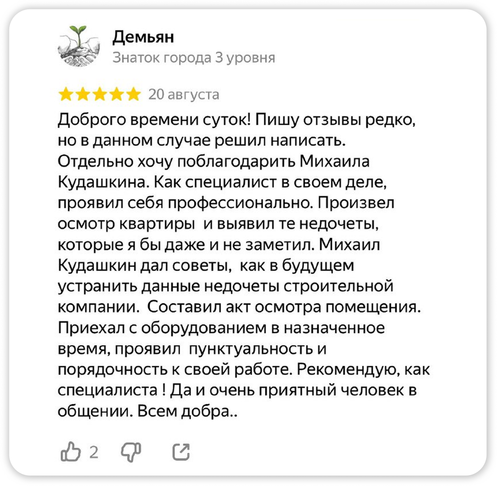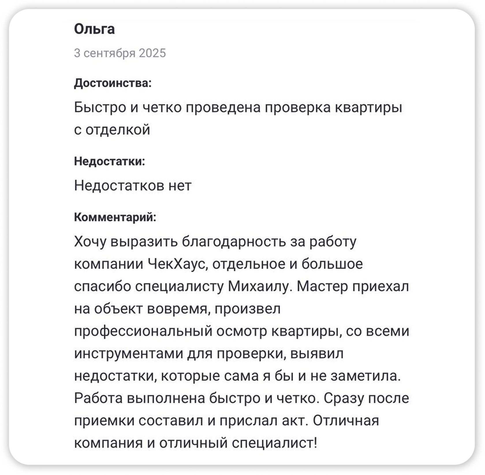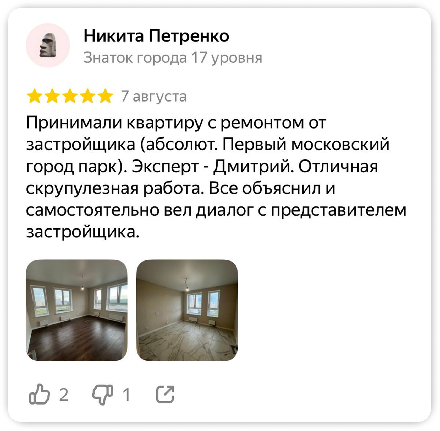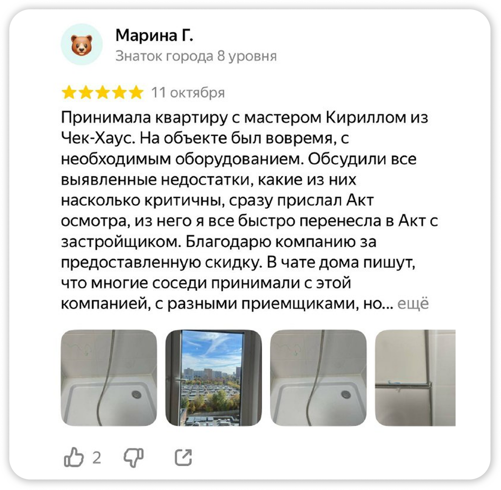 Все наши инженеры состоят в Реестре НОПРИЗ/НОСТРОЙ и имеют квалификацию судебных экспертов. Для проверки квартиры используют оборудование, зарегистрированное в Федеральном реестре средств измерений. Поэтому застройщики не препятствуют допуску на приемку, согласуют документы наших экспертов за 1 день и принимают замечания без возражений.