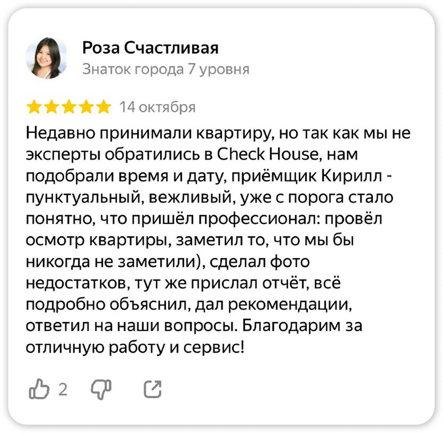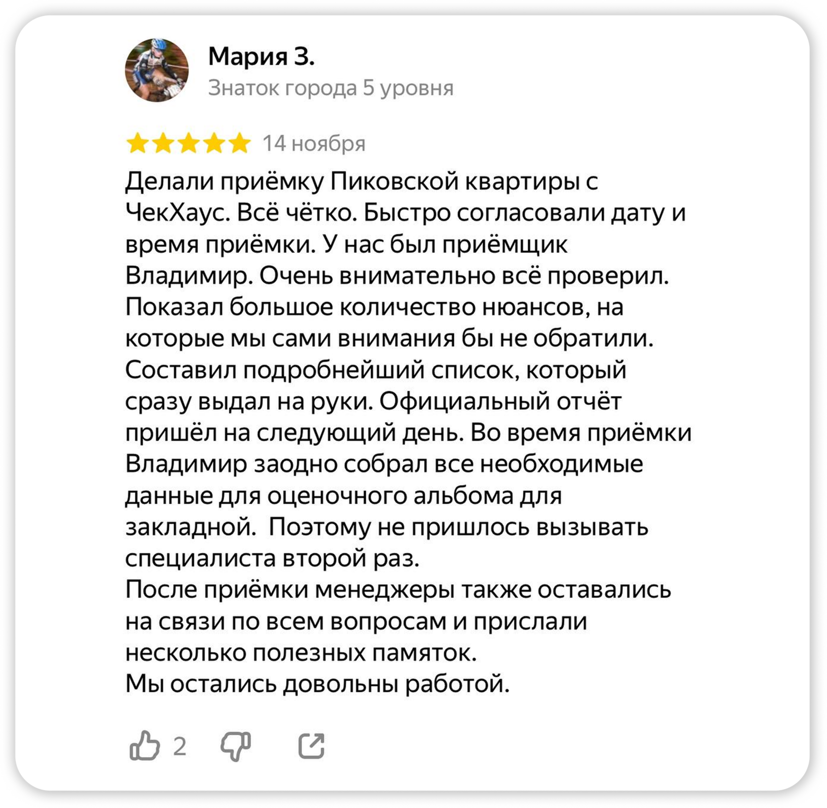 Более 1 500 отзывов от клиентов, которые прошли приёмку вместе с нашими экспертами.